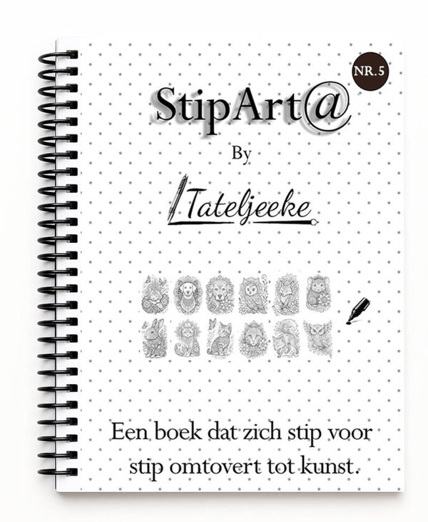 Welkom bij het StipArt@ A4 stipboek, jouw nieuwe creatieve metgezel! Met dit bijzondere boek kun je eenvoudig en plezierig beginnen met stippen. Het boek bevat een verzameling van 12 unieke patronen die speciaal zijn ontworpen om je creativiteit te stimuleren.