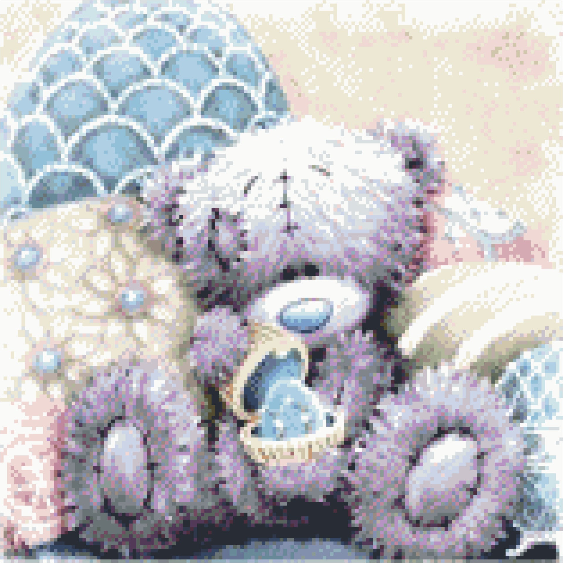 Je ontvangt standaard een canvas met patroon, kleurrijke steentjes (diamonds), en een starterset. Dit omvat een pennetje, was, pincet en een schudbakje.