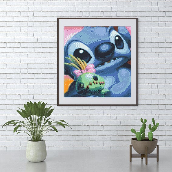 Je ontvangt standaard een canvas met patroon, kleurrijke steentjes (diamonds), en een starterset. Dit omvat een pennetje, was, pincet en een schudbakje.
